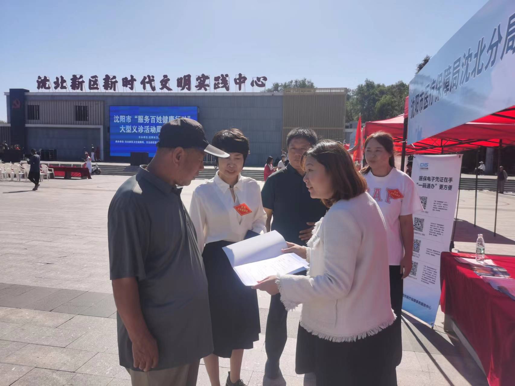 近日,沈阳市“服务百姓健康行动”大型义诊活动周启动仪式在沈北新区新时代广场举行。本次活动旨在深入贯彻落实国家、省市2023年“服务百姓健康行动”全国大型义诊活动的工作部署。作为活动的参与单位,市医保局沈北分局、沈北医保分中心利用这次活动契机,与沈北新区爱卫办、区卫健局、区医疗集团等单位协调联动,开展了医保政策咨询和宣传活动,推动医保进基层、进企业、进机关、进企业、进校园、进社区、进村屯、进家庭、进公共场所,扎实推进全民参保计划,让医保在服务群众健康行动中发挥出更多更大的效力。